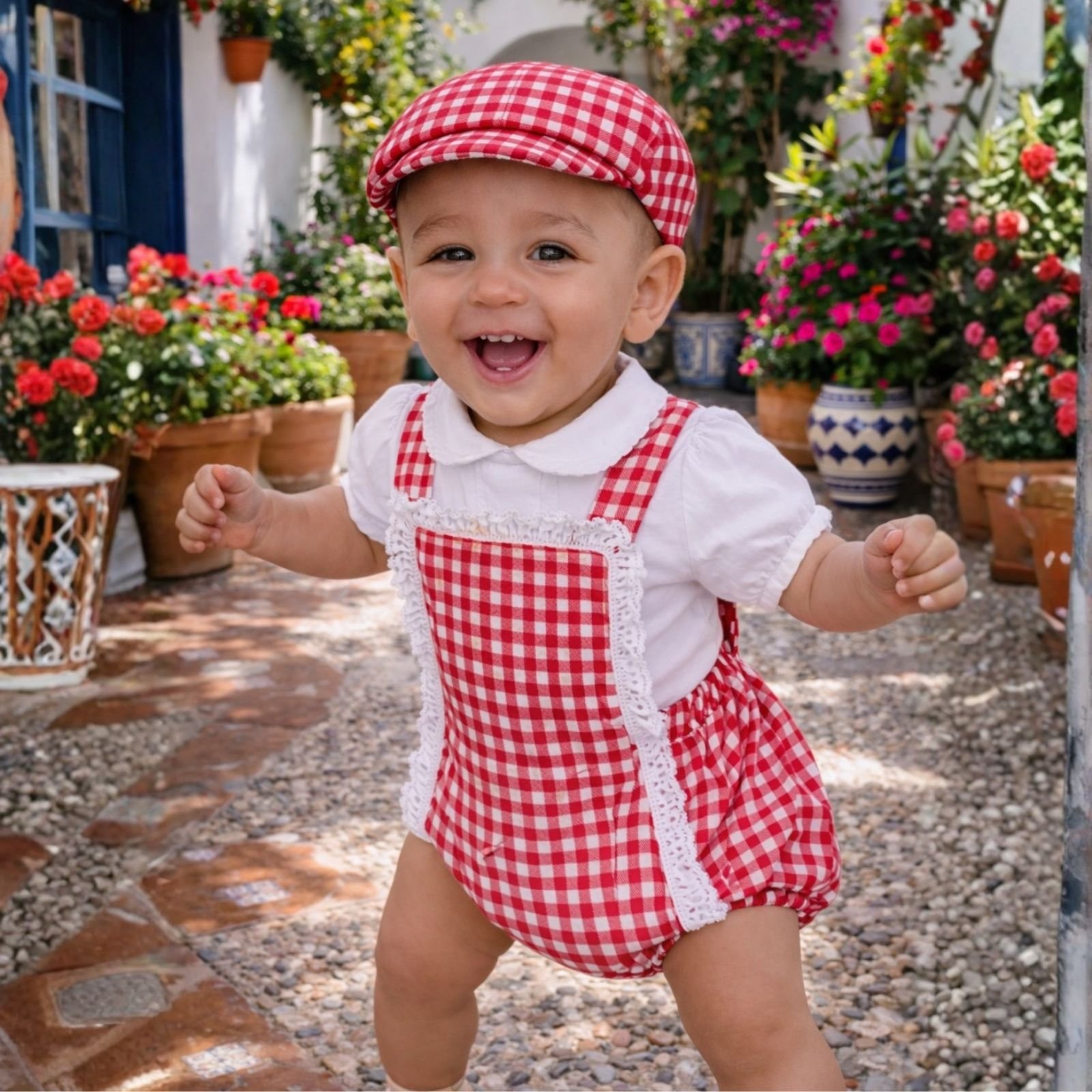 Ranita vichy roja con gorra