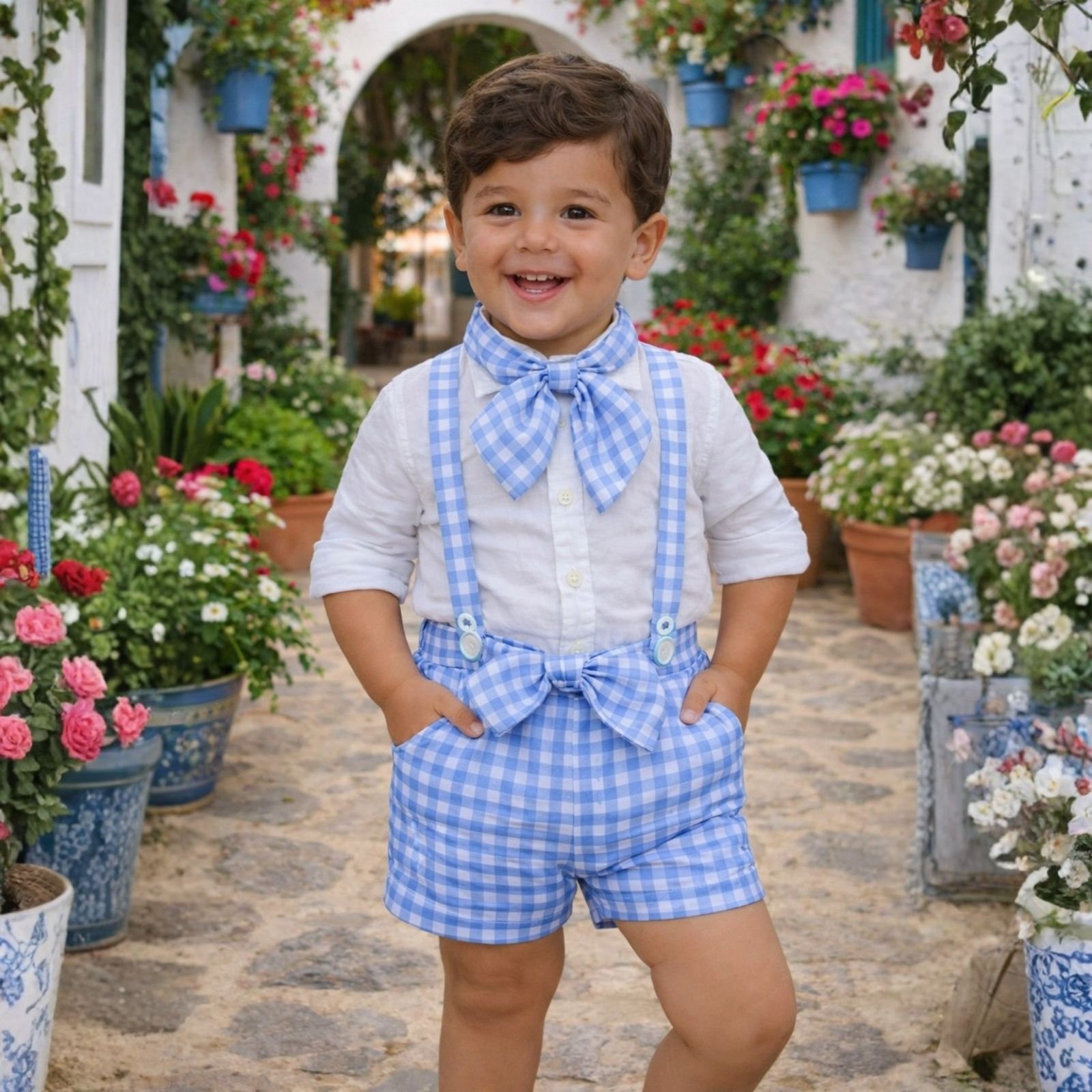 Conjunto niño Vichy Celeste