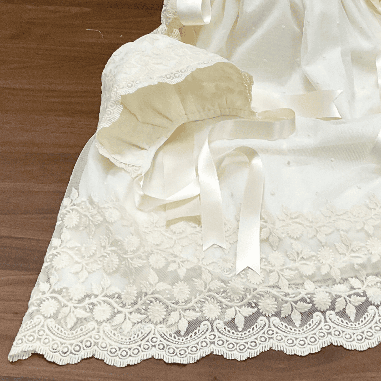 Su confección cuidada y los detalles minuciosos hacen del batón Cristina una prenda ideal para ceremonias, bautizos o momentos especiales, combinando tradición, ternura y refinamiento en un diseño atemporal.