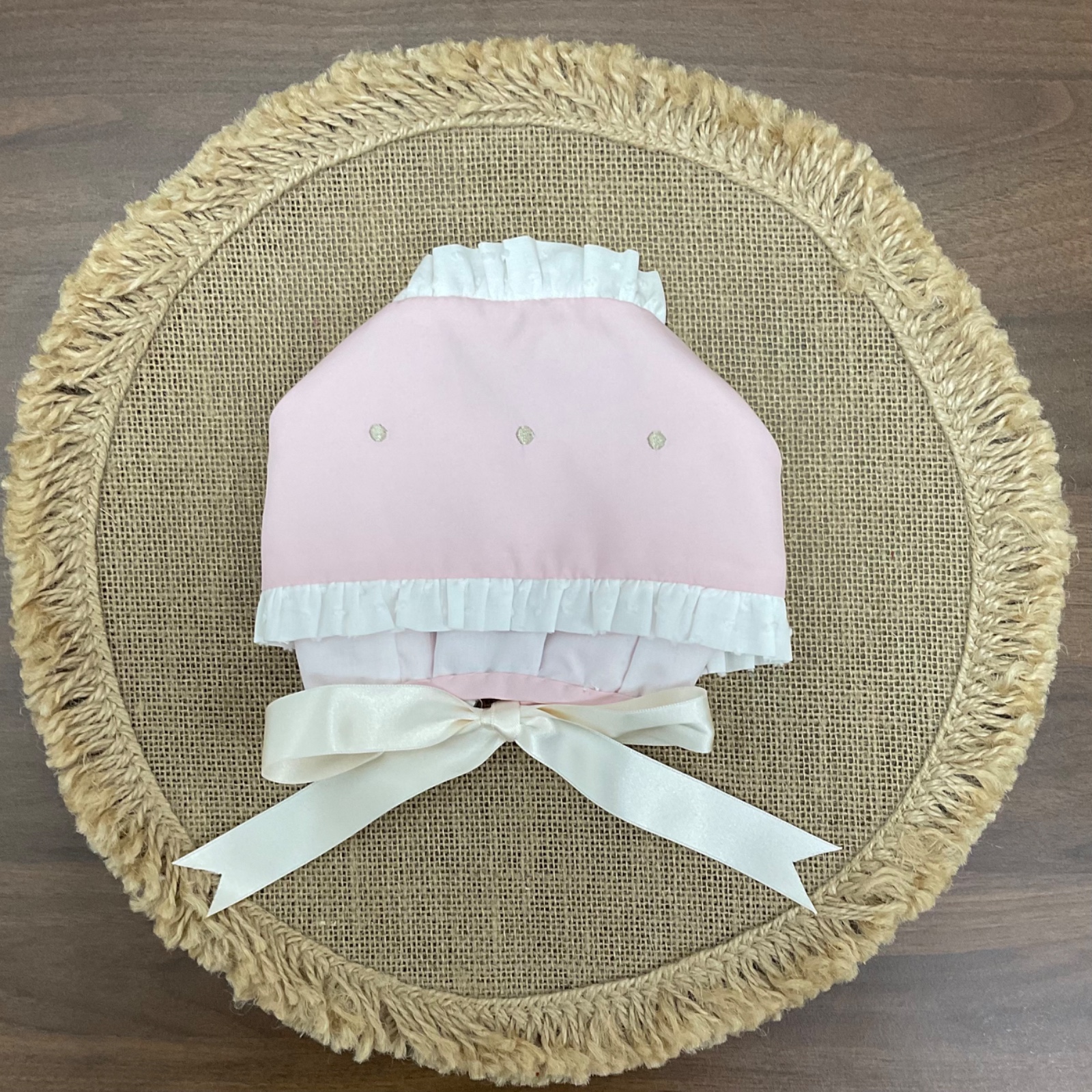 Braga y capota a juego del mismo tono, adornado con bonitos encajes. Perfecto para una ocasiones especiales como ceremonias.