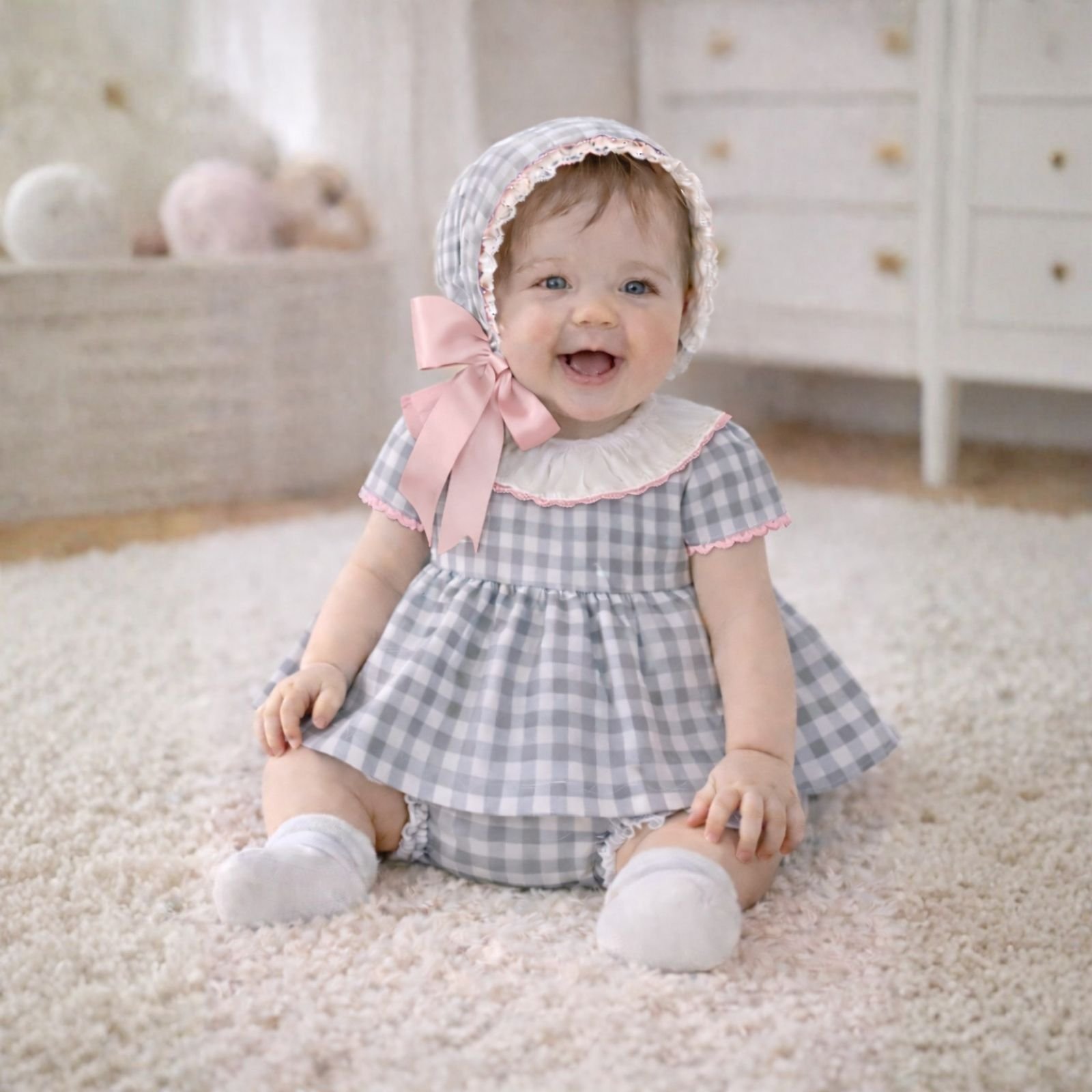 Jesusito de bebé confeccionado en delicado tejido vichy, un diseño clásico y dulce que combina tradición y elegancia en cada detalle.