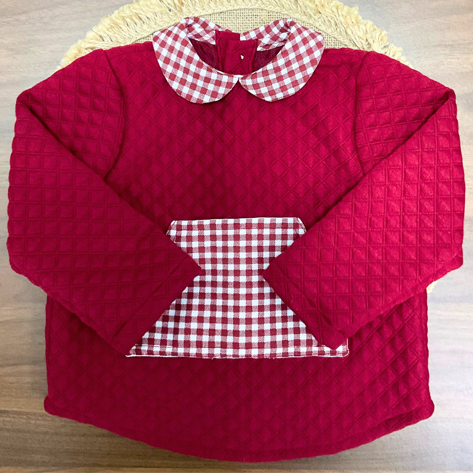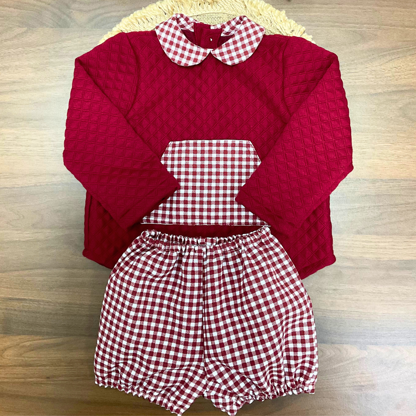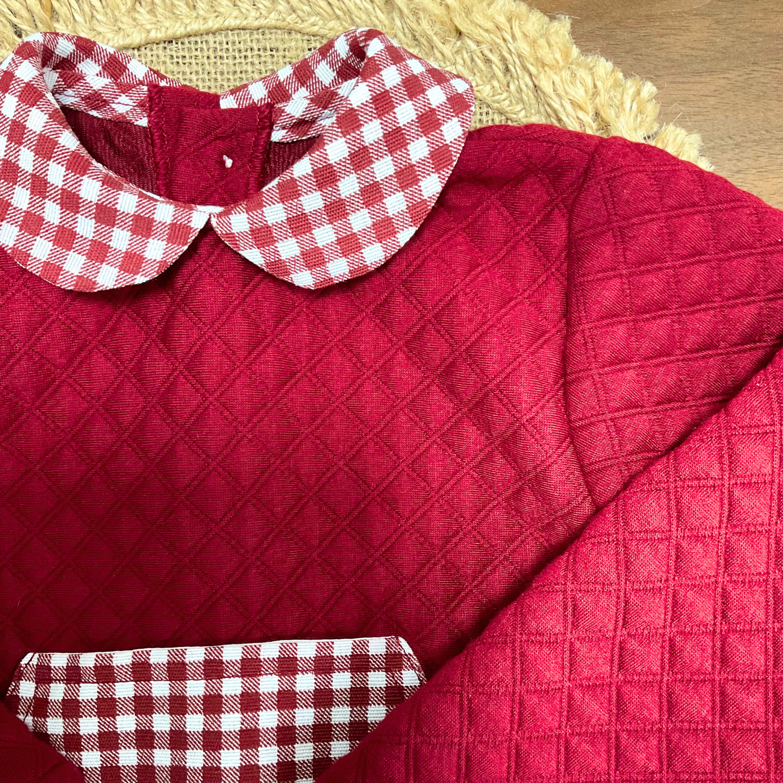 El modelo Benin está confeccionado en un tejido acolchado de tono burdeos, con una composición de 97% poliéster y 3% spandex que aporta suavidad, calidez y una textura agradable al tacto. Combina además un delicado tejido de cuadros vichy en burdeos, elaborado con un 80% de algodón y un 20% de poliéster, que realza su estilo clásico y refinado.